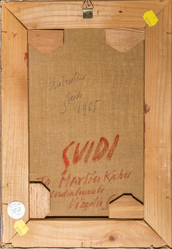 Dichiarazione di autenticità, datazione e dedica ad personam al retro