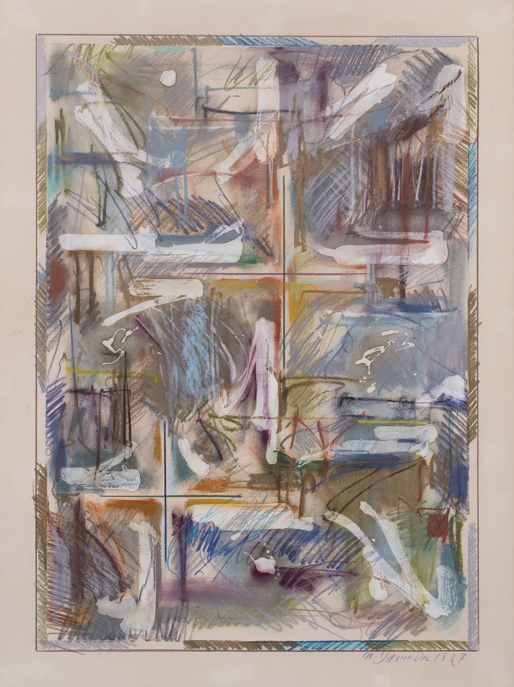 MASAAKI YAMADA (1930-2010)Work E.P. 66, 1987 Olio e pastelli su cartaCm...