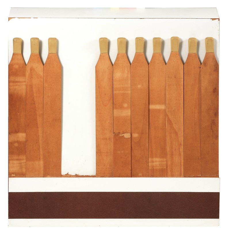 Raymond Hains Dinard 1926 - Parigi 2005 Saffa Assemblaggio su tavola, cm. 100x95x10 Firma al verso: Raymond Hains: scritta Provenienza Cesare Misserotti / Galleria L'Elefante 1961: timbro Studio d'Arte Eremitani, Padova. Storia: Galleria L'Elefante, Treviso; Collezione privata