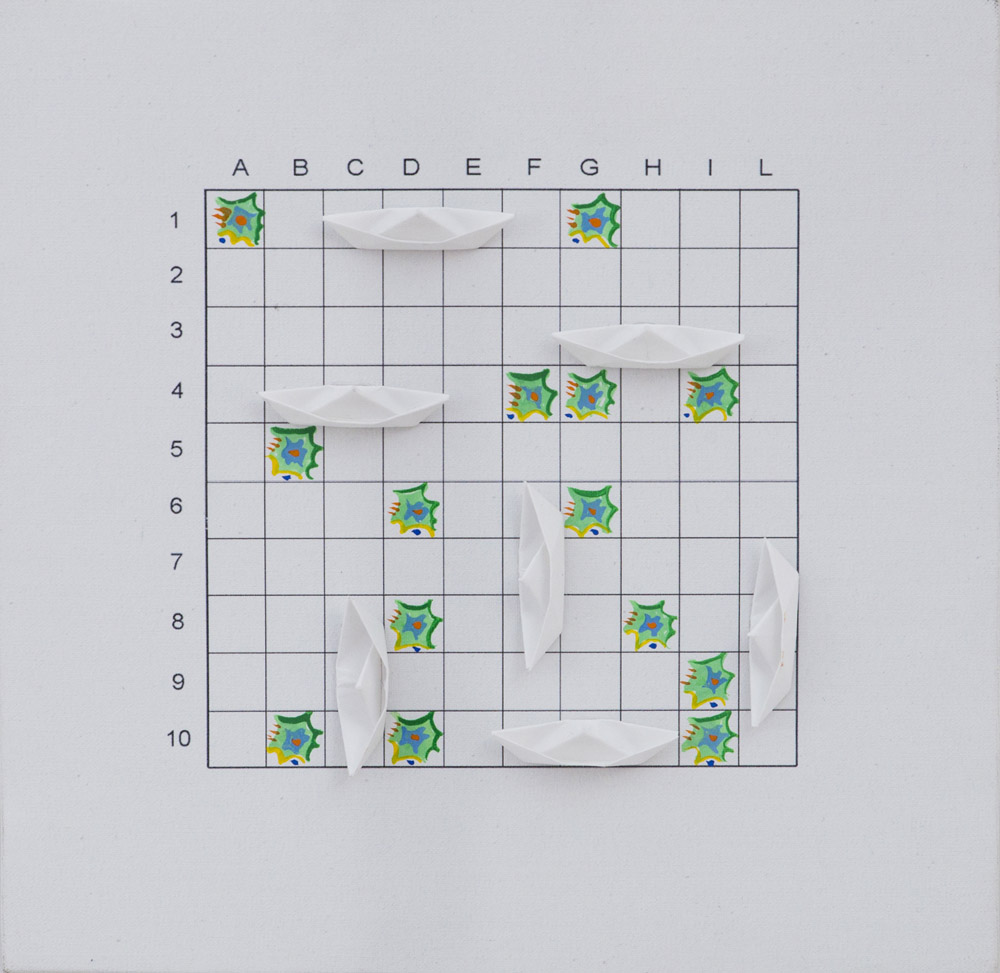 RICCARDO GUSMAROLI (1963)Battaglia Navale, 2010 Barche di carta su tela...