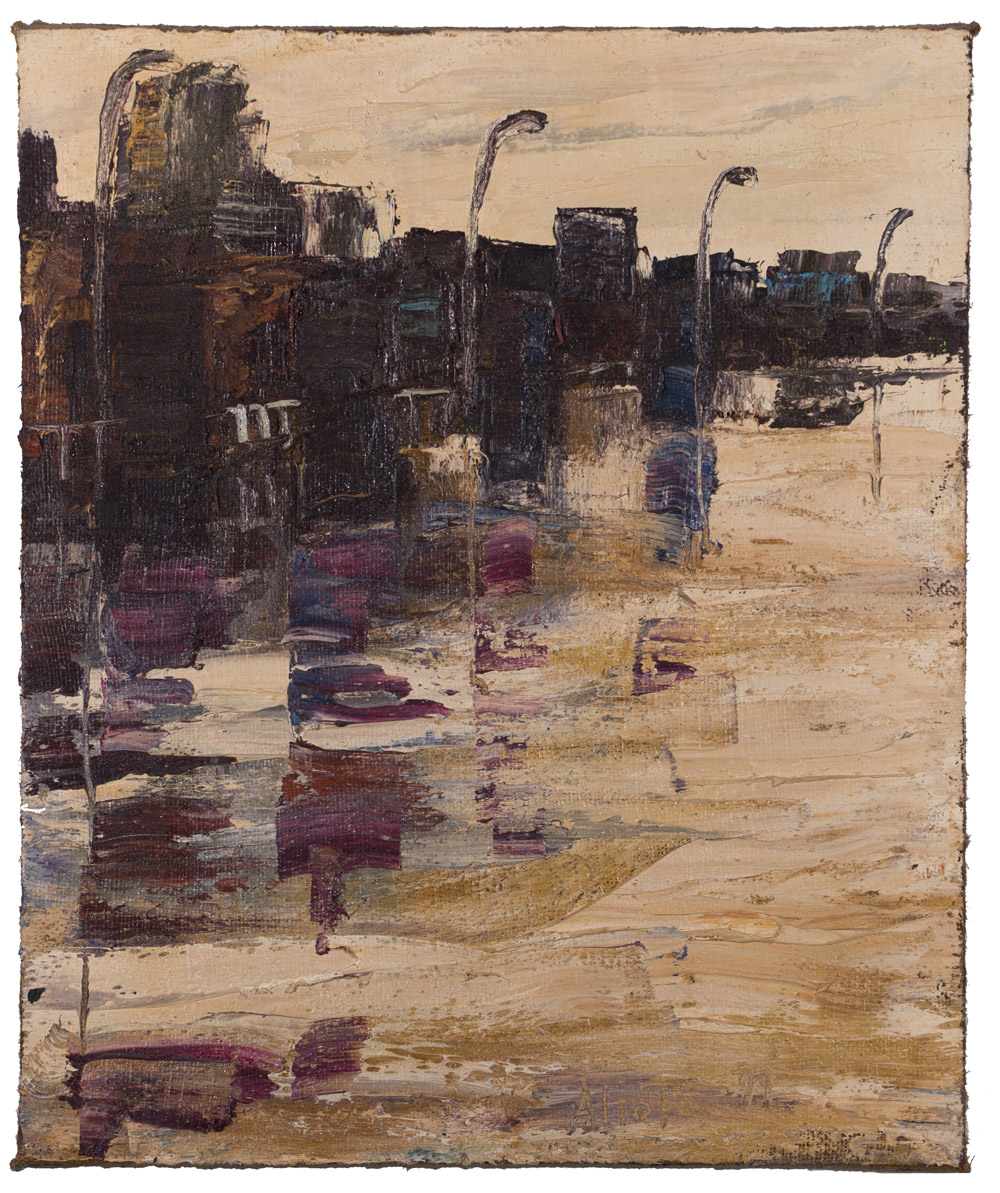 MASSIMILIANO ALIOTO (1972)Periferia, 1990 Olio su tela di iutaCm 60x50Firma,...