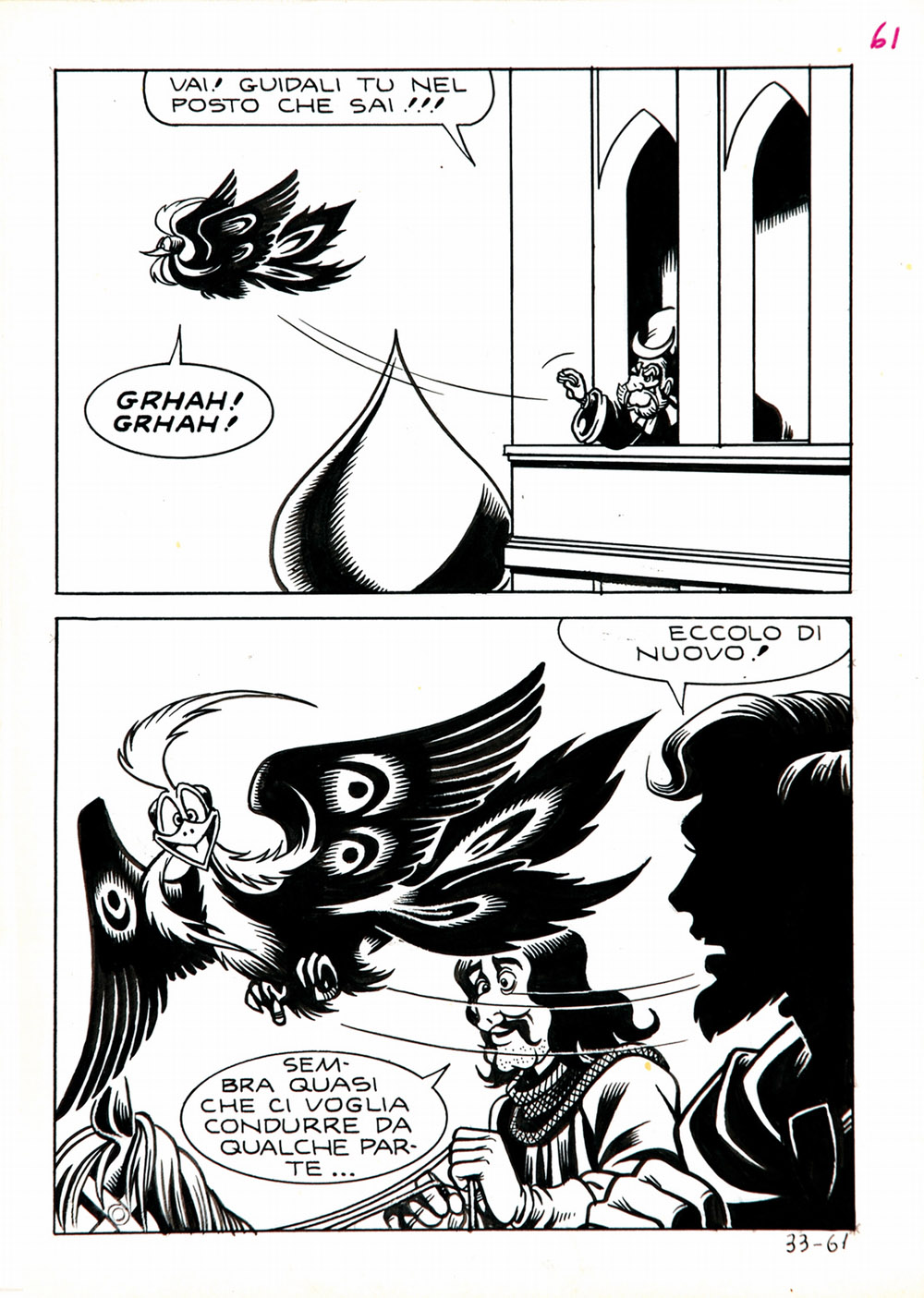 Original arts n. 61 and 62 for the story published on "Sexy Favole" (Sexy Tales) # 33, Nov 1974. Pencil and ink on thin cardboard cm 17x25 each. Excellent conditions.