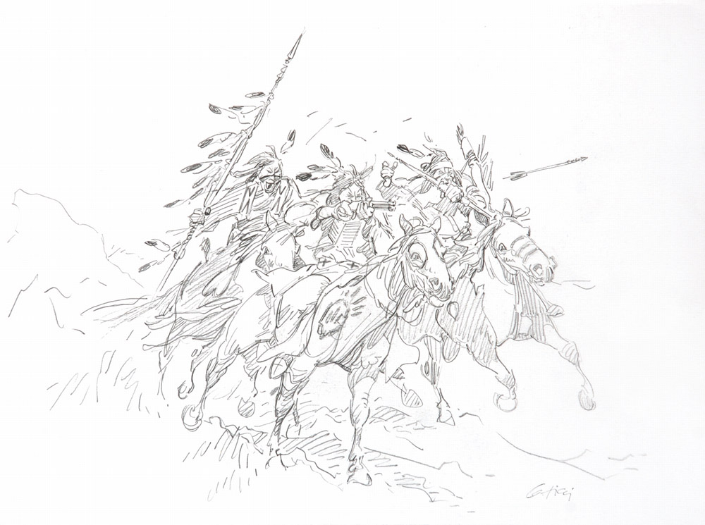 Pencil on thin cardboard sketch cm 33,5x25,3, signed. This darwing was published on page 25 of "Tex l'avventura e i ricordi di Ticci e Verger", Little Nemo, 2013. Excellent conditions..