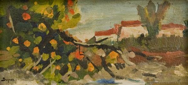 Lotto 4 | Vico Supan Autunno olio su cartone cm. 9x19 Firma in basso a sx