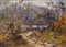 Paolo Sala (Milano 1859 - 1924) - "Scorcio lacustre con alberi e montagne sullo sfondo" olio su cartone (cm 25x35) Firmato in basso a destra In cornice