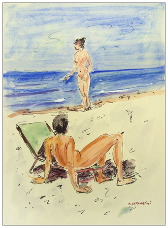 ALFREDO CATARSINI Viareggio 1899 – Viareggio 1993 Dopo il bagno Tecnica mista...