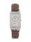 C. n. 28462 rettangolare in acciaio. Q. argentato, ore decentrate con indici smaltati, secondi al 6. M. di forma a carica manuale. Quadrante, cassa e movimento firmati.