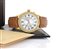 C. n. 989.5216 in oro giallo 18 kt con fondello a cerniera, movimento protetto da vetro, lunetta graduata e girevole. Q. bianco con numeri romani smaltati, divisione a 180 gradi, secondi e disco rotante argentato al centro. M. a carica automatica. Quadrante, cassa e movimento firmati. Completo di cinturino, astuccio e certificato originali.