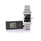 C. rettangolare in acciaio con fondello chiuso da viti. Q. nero con indici applicati, numeri arabi smaltati e secondi al sei. M. al quarzo. Bracciale in acciaio. Quadrante, cassa, movimento e bracciale firmati.