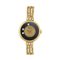 C. n. 196642 in oro giallo 18 kt con anse in brillanti e lunetta nera con 3 brillanti passanti tra i due vetri. Q. champagne e nero. M. a carica manuale. Bracciale a tre fili in oro giallo 18 kt. Quadrante, cassa, movimento e bracciale firmati.