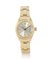 C. n. 3484578 in oro giallo 18 kt con fondello e corona a vite, lunetta godronata. Q. argentato con indici applicati, secondi al centro e data al 3. M. a carica automatica. Bracciale Oyster in oro giallo 18 kt. Quadrante, cassa, movimento e bracciale firmati.