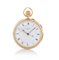 C. in oro giallo 9 kt con leva stop laterale. Q. in smalto con numeri romani e secondi al centro. M. con scappamento ad ancora, carica manuale. Quadrante e movimento firmati.