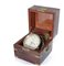C. circolare in ottone dorato, basculante entro cassa in legno. Q. argentato con numeri romani smaltati, secondi al 6 e riserva di carica, 56 ore, al 12. M. con scappamento Detent.