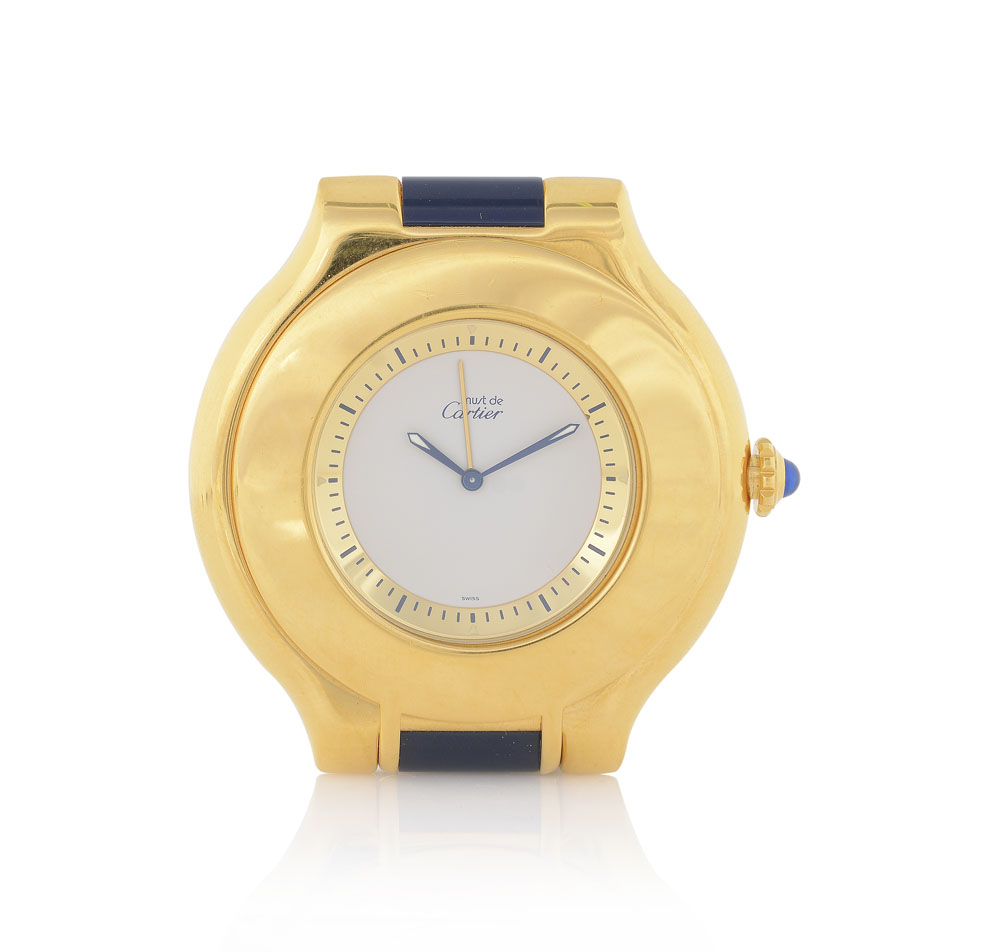 CARTIERCARTIER SVEGLIETTA ANNI '90.C. circolare in metallo dorato e smalto...