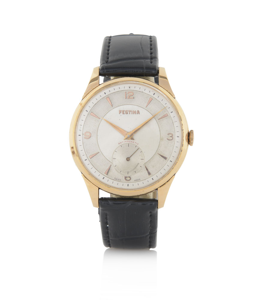 FESTINAFESTINA ANNI '50. C. in oro rosa 18 kt. Q. argentato liscio con anello...
