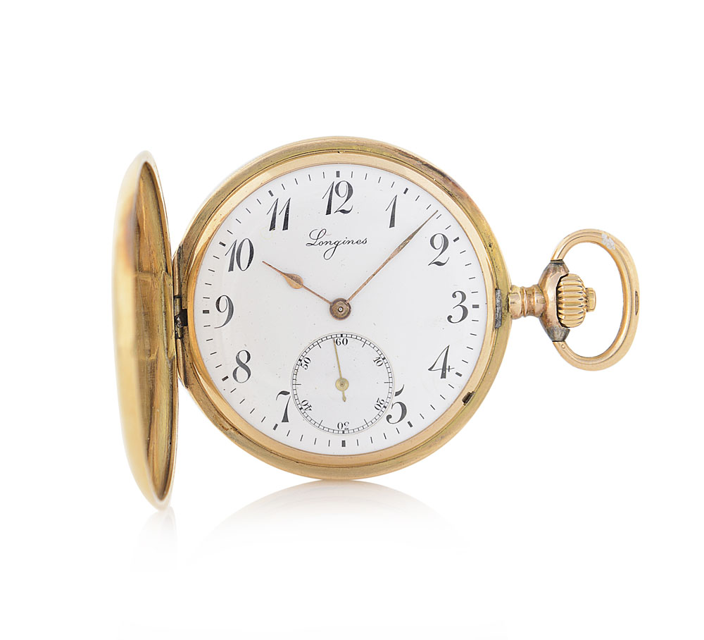 C. tripla n. 2334964 in oro giallo 18 kt. Q. in smalto con numeri arabi e secondi al 6. M. n. 2334964 in ottone dorato, scappamento ad ancora, carica manuale. Quadrante, cassa e movimento firmati.