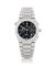 C. tonneau in acciaio con fondello a vite, pulsanti rettangolari e pulsante tondo al 10 per la suoneria, vetro zaffiro. Q. nero con numeri arabi, indici e lancette luminescenti, contatore a 30 minuti e 12 ore, data tra il 4/5 e lancetta per la sveglia al centro. M. ibrido al quarzo. Bracciale in acciaio. Quadrante, cassa, movimento e bracciale firmati. Completo di astuccio originale.