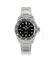 C. n. 818755 in acciaio con fondello e corona a vite, spallette a punta, lunetta nera sbiadita graduata e girevole. Q. nero lucido con grafica chiusa, indici e lancette luminescenti, secondi al centro. M. cal. 1570 a carica automatica. Bracciale Oyster in acciaio a maglie estensibili ref. 6636. Quadrante, cassa, movimento e bracciale firmati.