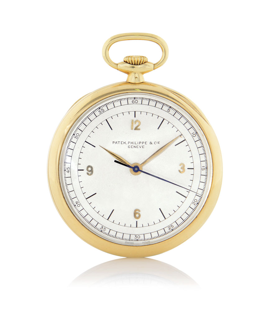 C. n. 620291 in oro giallo 18 kt. Q. argentato con indici smaltati e numeri arabi applicati, secondi al centro. M. n. 880788, cromato con scappamento ad ancora e regolazione micrometrica, carica manuale. Quadrante, cassa e movimento firmati. Completo di estratto di registro.