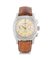 C. in acciaio con pulsanti rettangolari, fondello chiuso da viti e vetro zaffiro. Q. avorio con numeri arabi applicati, 24 ore al 9 e contatore dei minuti centrale. M. a carica automatica. Quadrante, cassa e movimento firmati. Completo di cinturino. fibbia in acciaio, astuccio e certificato del 08/2000 originali.