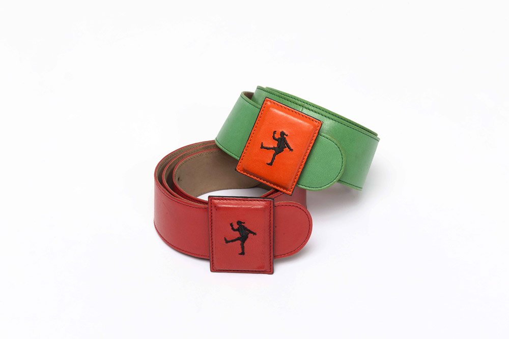 Moschino: lotto composto da due cinture in pelle una rossa e una verde, tg 46