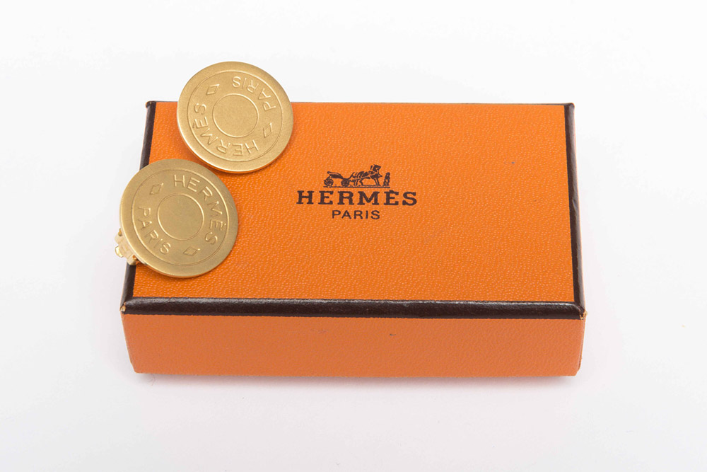 Hermes Paris: orecchini a clip color oro di forma circolare e logati, in custodia originale