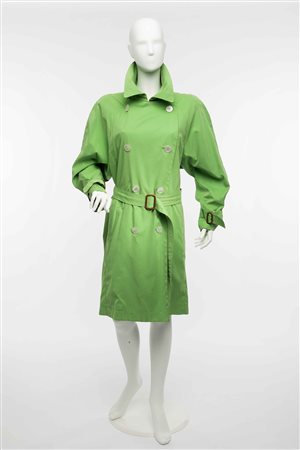 Hermes Paris: trench color verde mela, chiusura doppiopetto, bottoni...