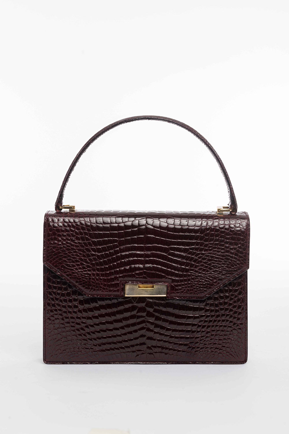 Gucci: borsa a mano in coccodrillo bordeaux, largh. cm 24, in sacchetto e scatola originali. Pre-Convenzione Cites