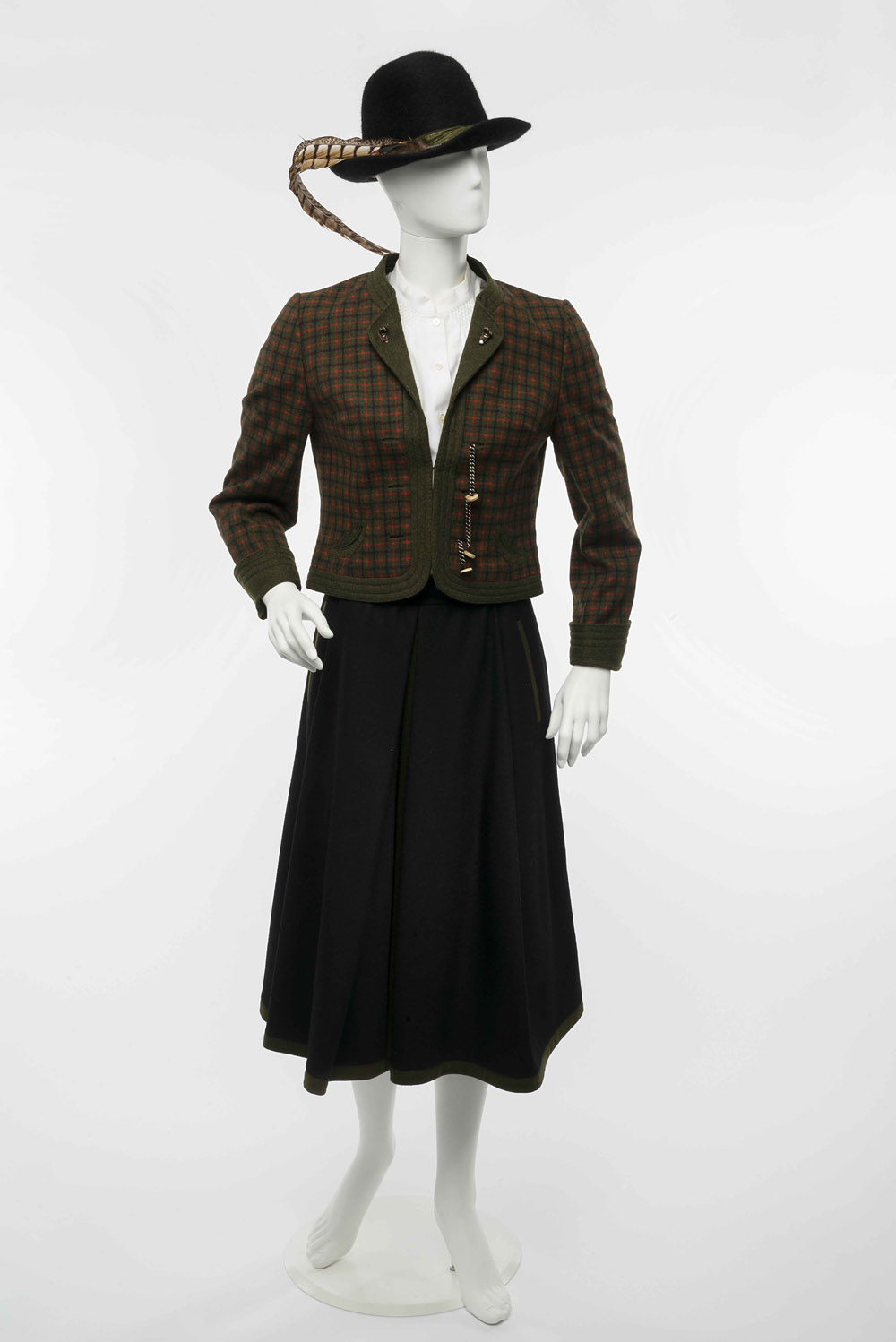 Lotto composto da un completo Resi Hammerer in lana con giacca corta e gonna (tg 36) e una camicia bianca con cappello Dolomitenhut-Austria