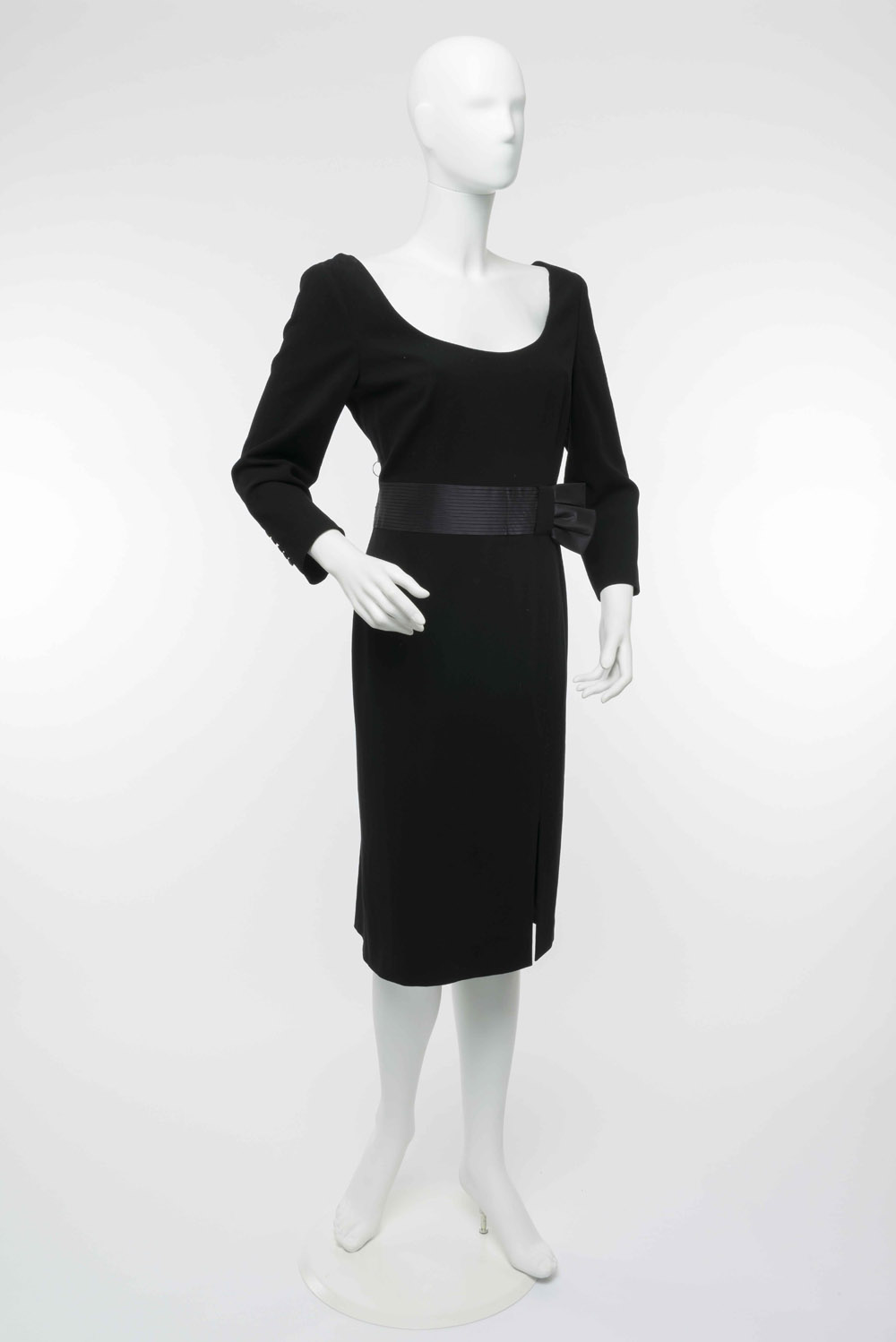 Escada: abito in lana nero con nastro di raso in cintura, tg 44 (nuovo)