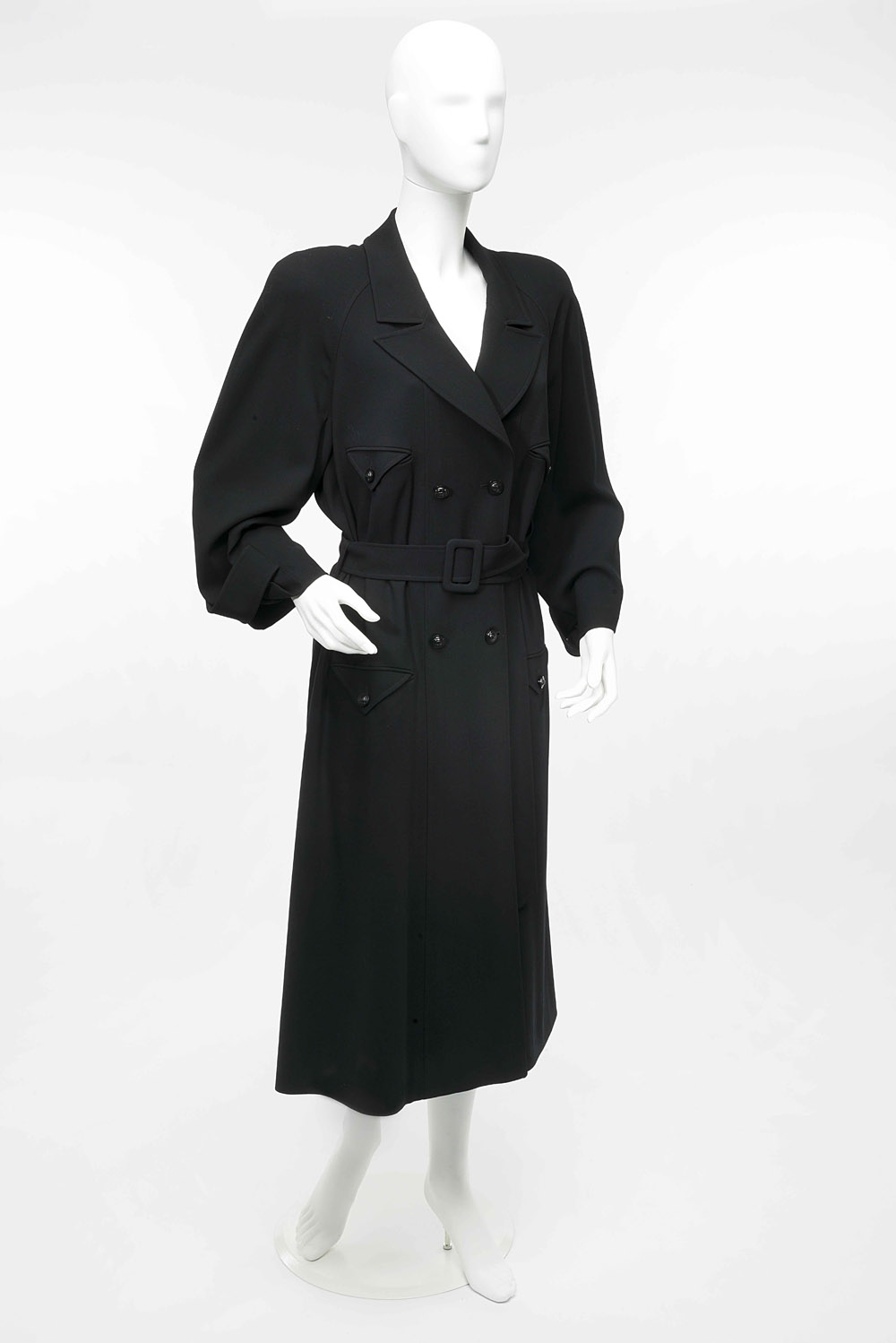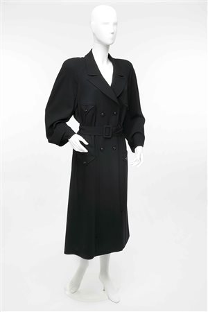 Chanel Boutique: cappotto doppiopetto in lana nera con bottoni logati e cintura
