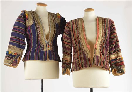 Lotto composto da due giacche corte originarie dell'Asia centrale, in velluto rigato e ricamato, sec. XX (difetti)
