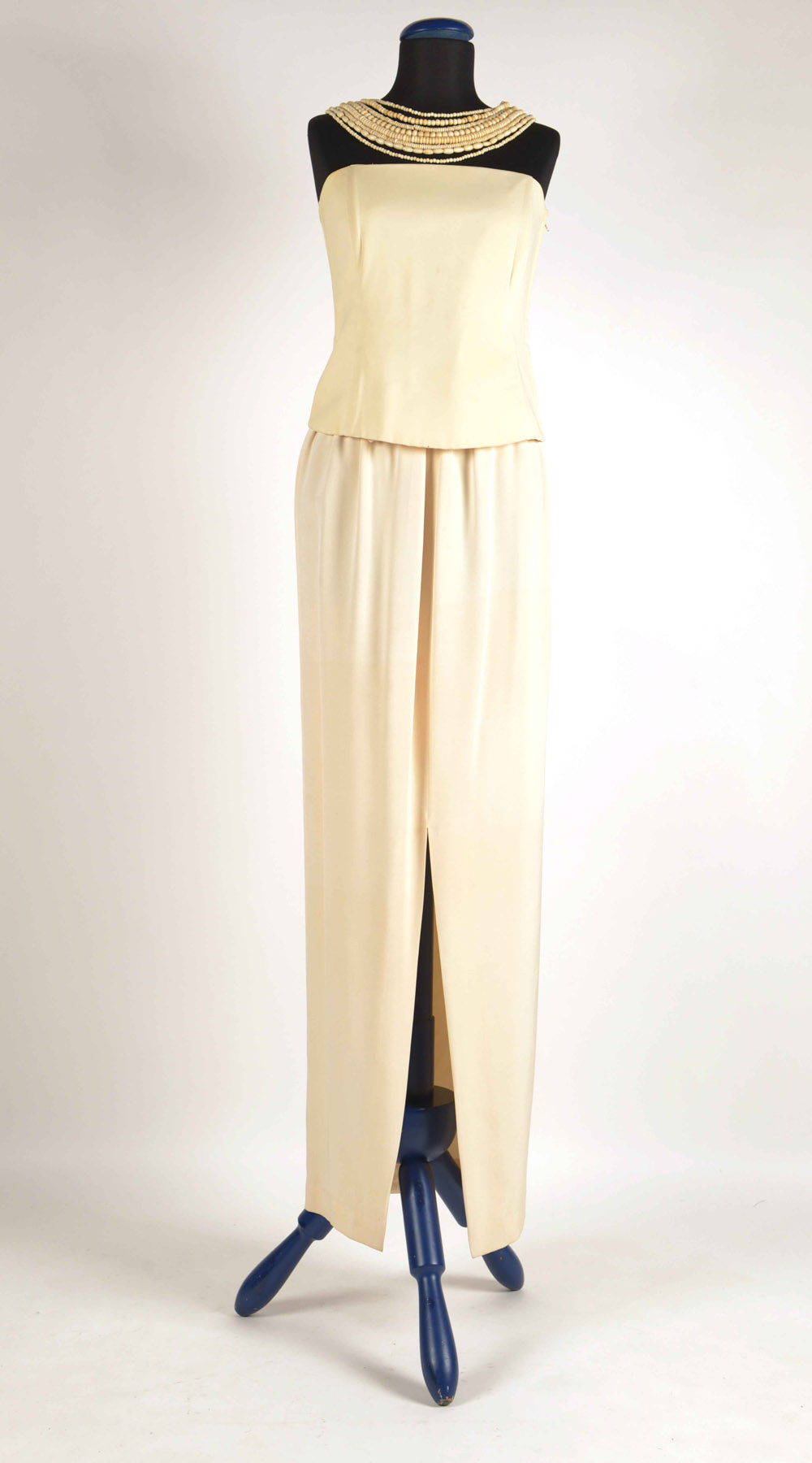 Lotto composto da un corpetto, gonna lunga con cintura in cotone e spacco frontale di Gianfranco Ferrè (tg 42) e collana etnica ad otto fili (lievi difetti)