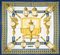 Hermes Paris: foulard in seta stampa "Feux de route", sui toni del senape su fondo avorio e bordo blu, Caty Latham, 1971 (lievi difetti)