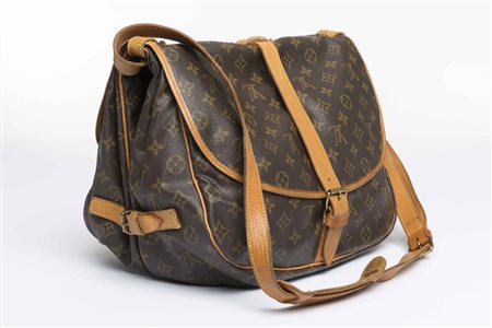 Louis Vuitton Paris: borsa in tela Monogram, tracolla e profili in vacchetta, largh. cm 34