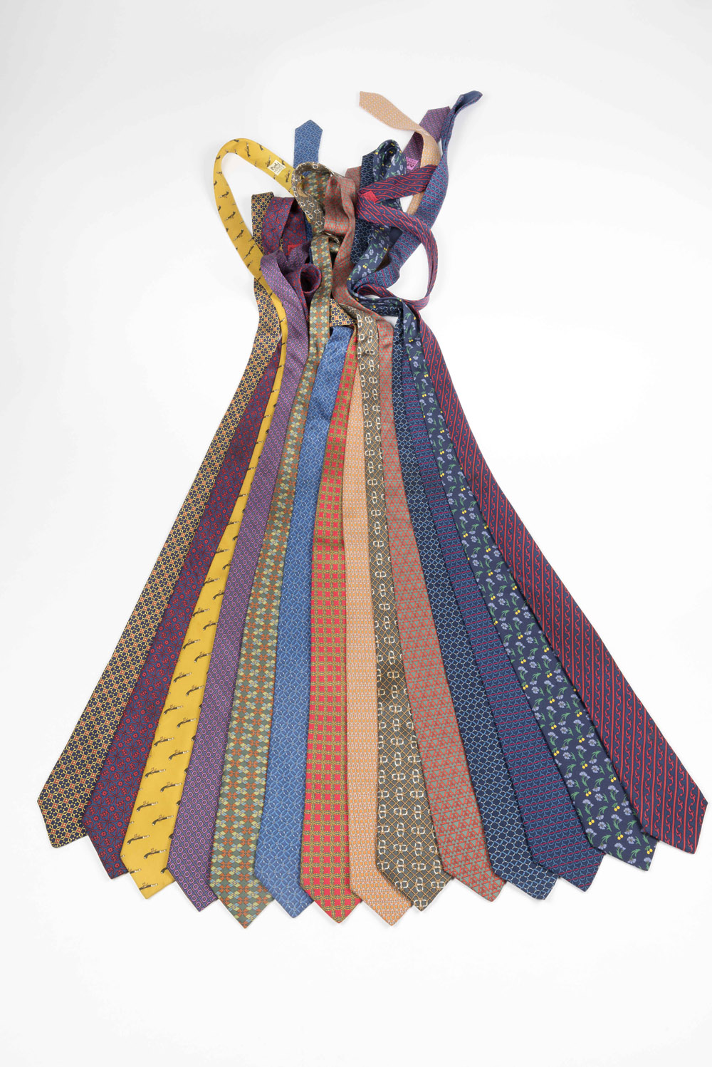 Hermes Paris: lotto composto da quattordici cravatte in seta, fantasie e colori differenti
