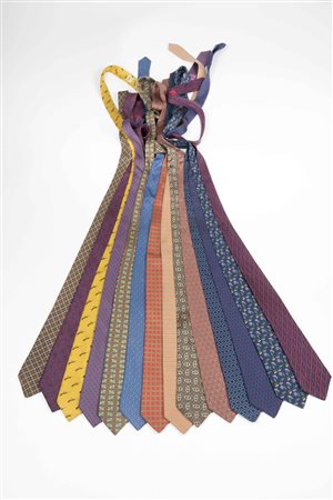 Hermes Paris: lotto composto da quattordici cravatte in seta, fantasie e...