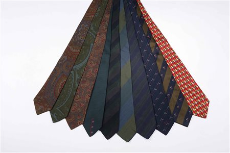 Valentino, Gucci, Gianni Versace, Capucci, Roberto Cavalli, Moschino: lotto di dieci cravatte, di cui una in confezione originale (difetti)