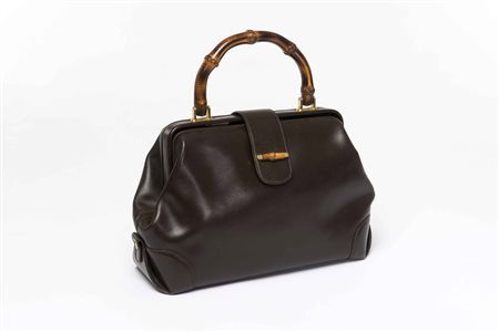Gucci: borsa Bamboo in pelle marrone, largh. cm 30