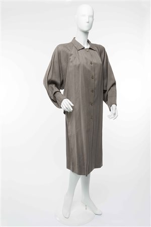 Gianfranco Ferrè: soprabito in lana color tortora con abbottonatura centrale...