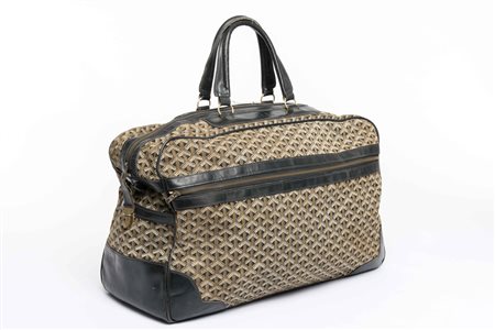 Goyard Paris 233 Rue Saint-Honorè: borsone in tela logata, rifiniture in pelle nera, doppio manico, tasca interna ed esterna con cerniera, mis. cm 53 (lievi difetti)