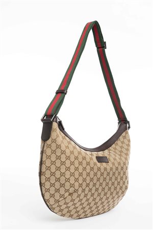 Gucci: borsa Hobo canvas con tracolla regolabile banda verde e rossa, largh. cm 44 (lievi difetti)