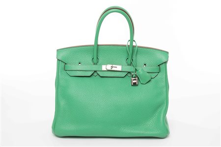 Hermes Paris: borsa Birkin in pelle Clemence color verde menta, anno 2012, largh. cm 35