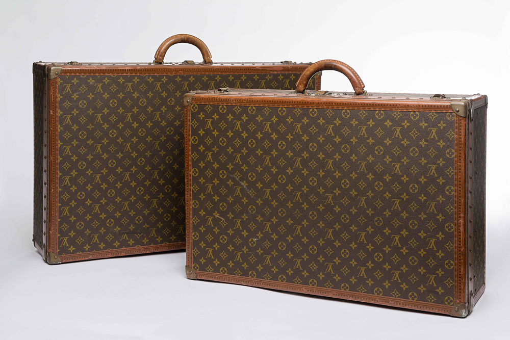 Louis Vuitton: lotto composto da due valigie rigide rivestite in tela Monogram, dettagli in ottone logato, interni con ripiano estraibile rivestiti in tessuto con cinghie logate, mis. cm 80x51x22 e 70x46x22 (lievi difetti)