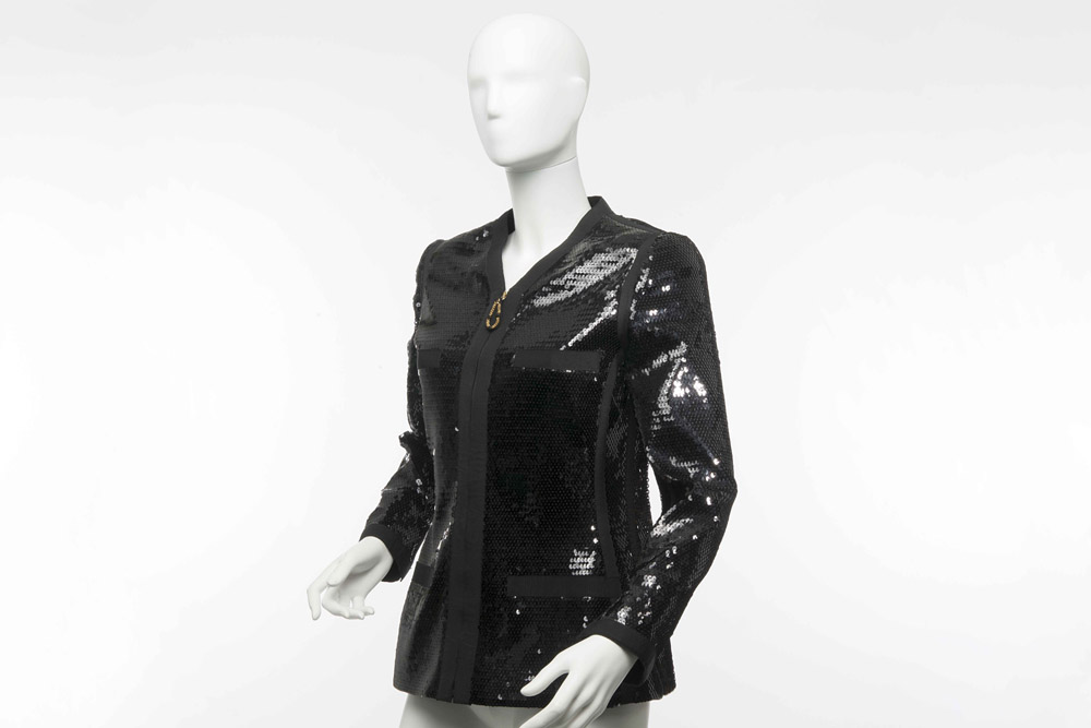 Chanel Boutique: giacca nera rivestita in pailettes con zip gioiello
