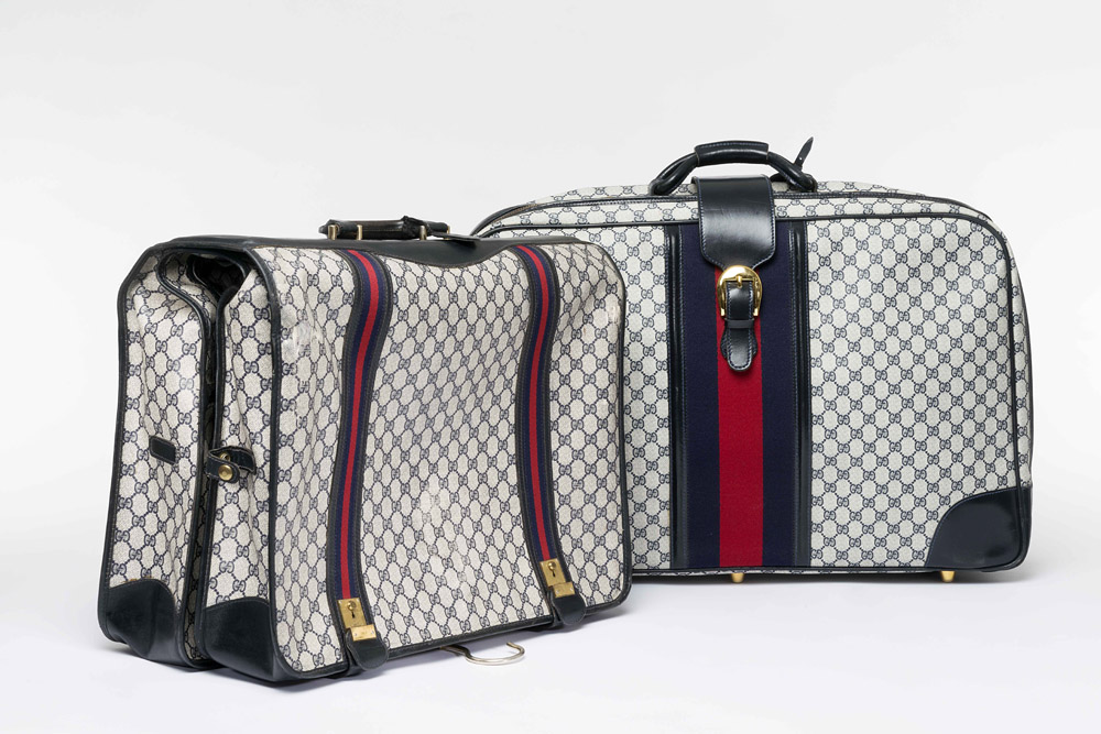 Gucci: lotto composto da una valigia semirigida (cm 66x20x44) e un portabiti...