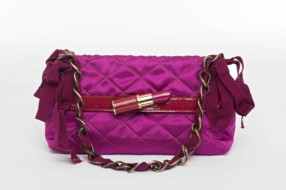 Moschino Cheap and Chic: borsa matelassè fucsia con catena e chiusura a forma di rossetto, largh. cm 23, in sacchetto originale
