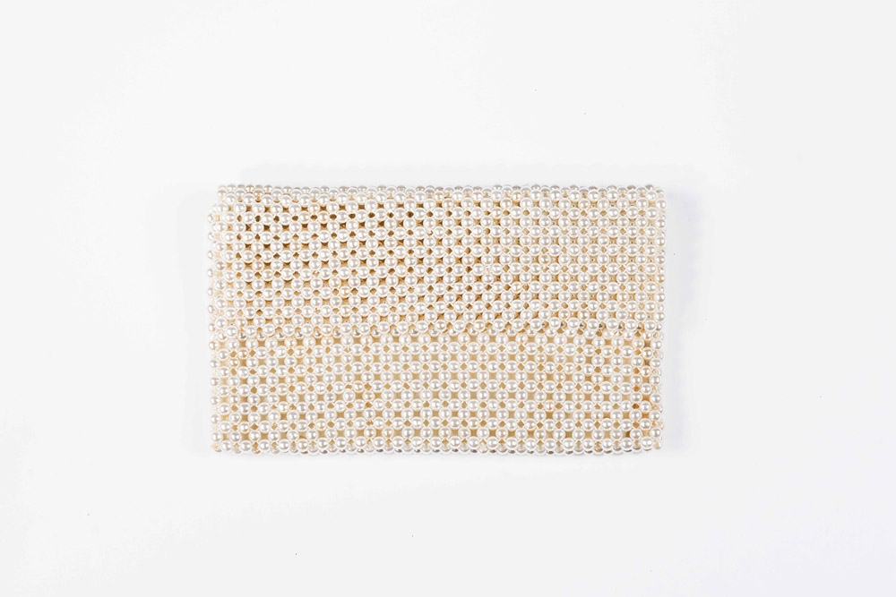 Pochette con cerniera tutta di perle fancy bianche infilate, largh. cm 21, in...
