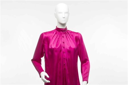 Lancetti Alta Moda Pronta Roma: camicia in seta fucsia con bottoni decorativi, allacciatura sul retro e collo a sciarpa