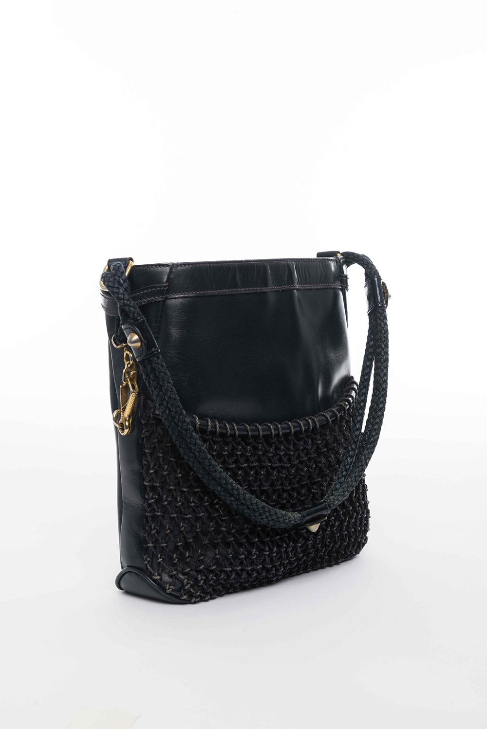 Gucci: borsa in pelle color blu con tracolla in corda ritorta, tasca frontale a rete, largh. cm 23, dettagli in metallo dorato (difetti) in sacchetto originale. Il ricavato della vendita di questo lotto sarà devoluto all'Associazione Amici della Fondazione Floriani Onlus.